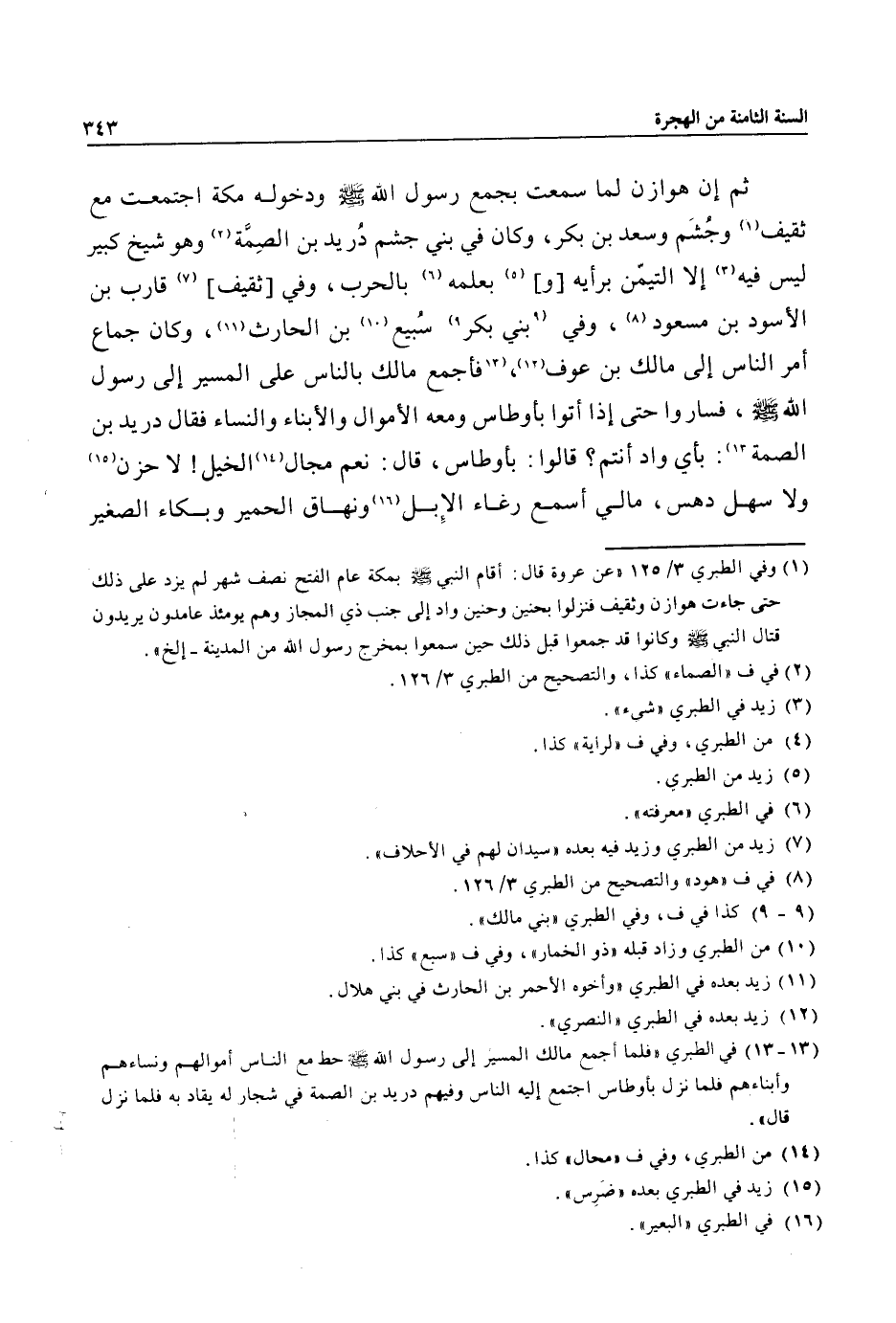 (1) وفي الطبري 3/ 125 «عن عروة قال: أقام النبي صلى الله عليه وسلم بمكة عام الفتح نصف شهر لم يزد على ذلك حتى جاءت هوازن وثقيف فنزلوا بحنين وحنين واد إلى جنب ذي المجاز وهم يومئذ عامدون يريدون قتال النبي صلى الله عليه وسلم وكانوا قد جمعوا قبل ذلك حين سمعوا بمخرج رسول الله من المدينة- إلخ» .