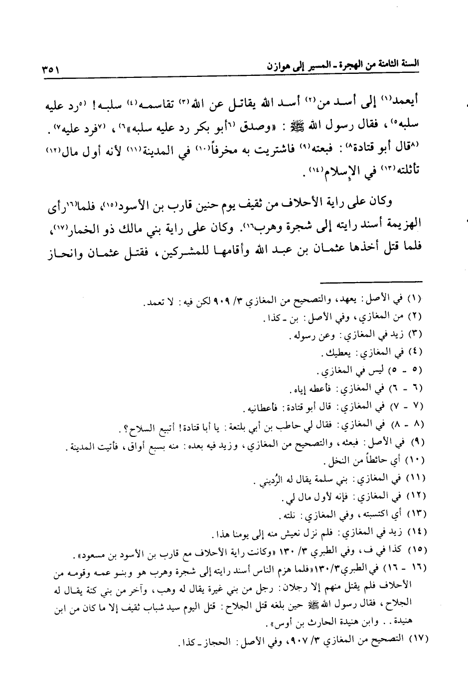 (17) التصحيح من المغازي 3/ 907، وفي الأصل: الحجاز- كذا.