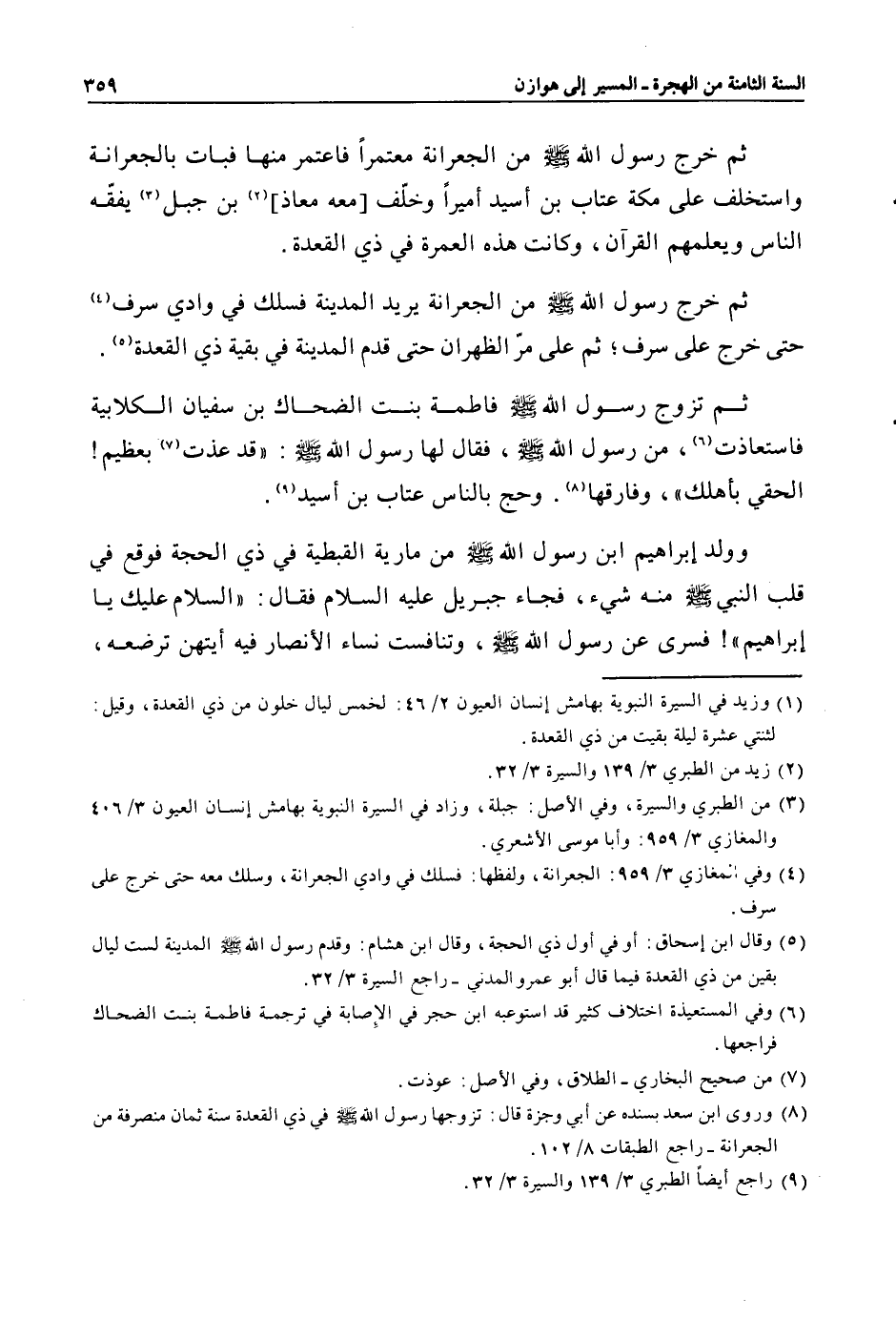 (8) وروى ابن سعد بسنده عن أبي وجزة قال: تزوجها رسول الله صلى الله عليه وسلم في ذي القعدة سنة ثمان منصرفة من الجعرانة- راجع الطبقات 8/ 102.