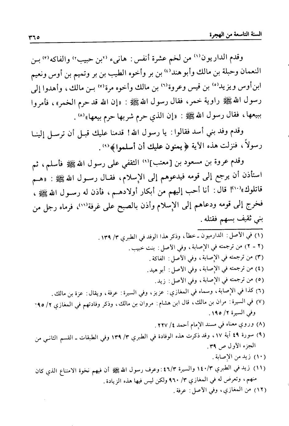 (9) سورة 49 آية 17، وقد ذكرت هذه الوفادة في الطبري 3/ 139 وفي الطبقات- القسم الثاني من الجزء الأول ص 39.