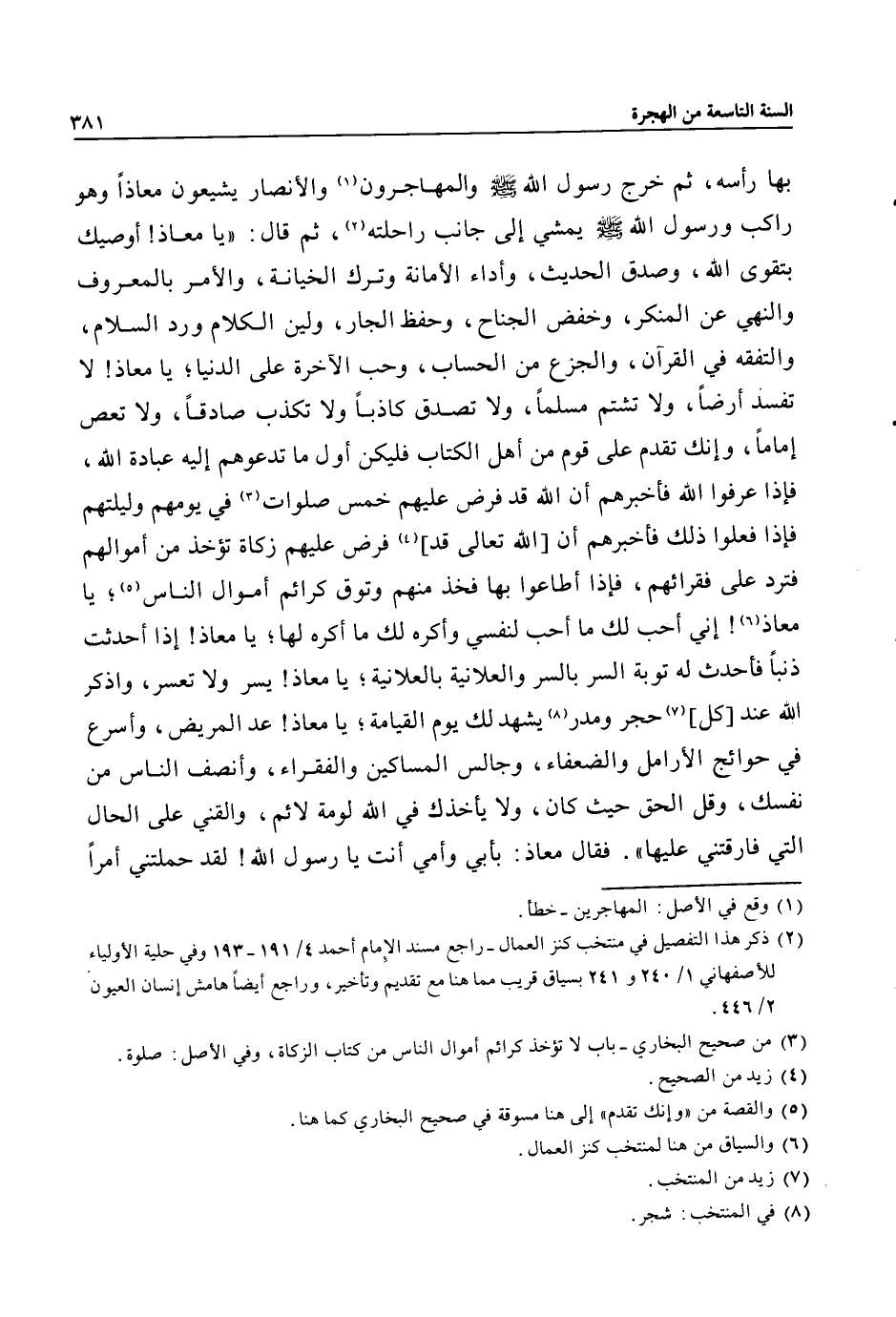 (2) ذكر هذا التفصيل في منتخب كنز العمال- راجع مسند الإمام أحمد 4/ 191- 193 وفي حلية الأولياء للأصفهاني 1/ 240 و 241 بسياق قريب مما هنا مع تقديم وتأخير، وراجع أيضا هامش إنسان العيون 2/ 446.