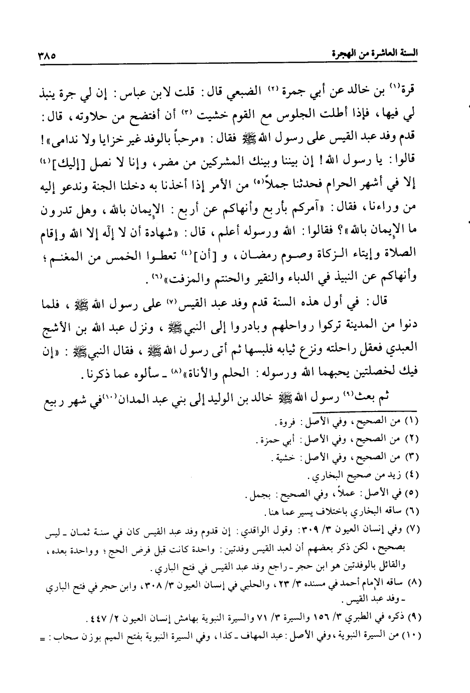 (7) وفي إنسان العيون 3/ 309: وقول الواقدي: إن قدوم وفد عبد القيس كان في سنة ثمان- ليس بصحيح، لكن ذكر بعضهم أن لعبد القيس وفدتين: واحدة كانت قبل فرض الحج؛ وواحدة بعده، والقائل بالوفدتين هو ابن حجر- راجع وفد عبد القيس في فتح الباري.