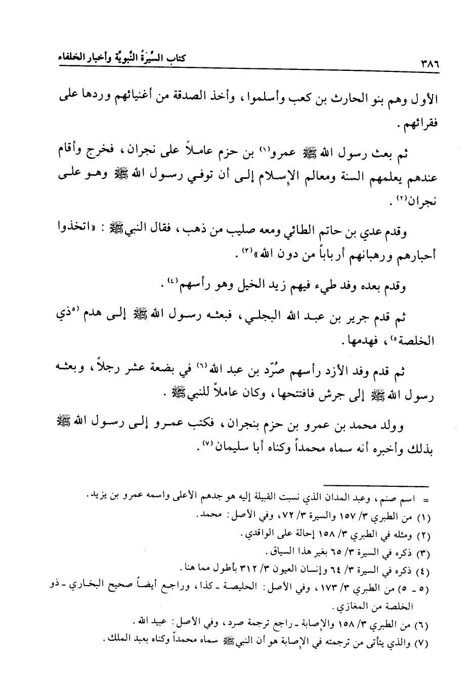 وولد محمد بن عمرو بن حزم بنجران، فكتب عمرو إلى رسول الله صلى الله عليه وسلم بذلك وأخبره أنه سماه محمدا وكناه أبا سليمان «7» .