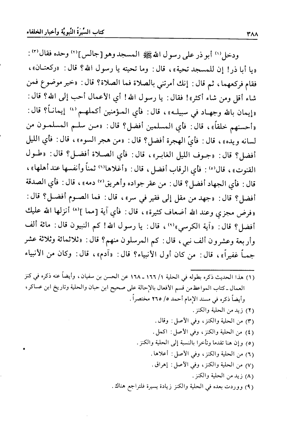 (9) ووردت بعده في الحلية والكنز زيادة يسيرة فلتراجع هناك.
