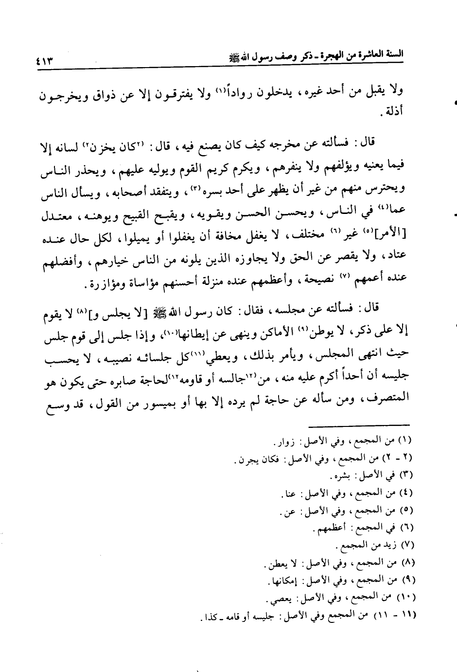 قال: فسألته عن مجلسه، فقال: كان رسول الله صلى الله عليه وسلم [لا يجلس و] «7» لا يقوم إلا على ذكر، لا يوطن «8» الأماكن وينهى عن إيطانها «9» ، وإذا جلس إلى قوم جلس حيث انتهى المجلس، ويأمر بذلك، ويعطي 1»