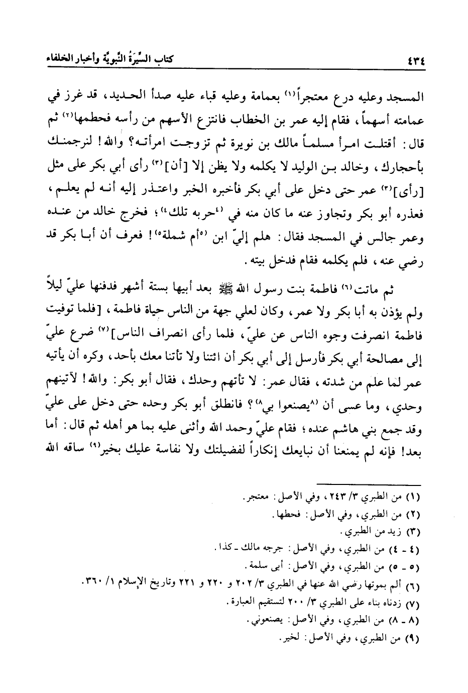 (6) ألم بموتها رضي الله عنها في الطبري 3/ 202 و 220 و 221 وتاريخ الإسلام 1/ 360.