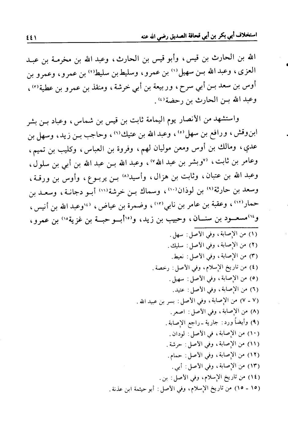 واستشهد من الأنصار يوم اليمامة ثابت بن قيس بن شماس، وعباد بن بشر ابن وقش، ورافع بن سهل «5» ، وعبد الله بن عتيك «6» ، وحاجب بن زيد، وسهل بن عدي، ومالك بن أوس ومعن موليان لهم، وفروة بن العباس، وكليب بن تميم، وعامر بن ثابت، «7» وبشر بن عبد الله «7» ، وعبد الله بن عبد الله بن أبي بن سلول، وعبد الله بن عتبان، وثابت بن هزال، وأسيد «8» بن يربوع، وأوس بن ورقة، وسعد بن حارثة «9» بن لوذان «10» ، وسماك بن خرشة «11» أبو دجانة، وسعد بن حمار «12» ، وعقبة بن عامر بن نابي «13» ، وضمرة بن عياض، «14» وعبد الله بن أنيس، و «14» مسعود بن سنان، وحبيب بن زيد، و «15» أبو حبة بن غزية «15» بن عمرو،