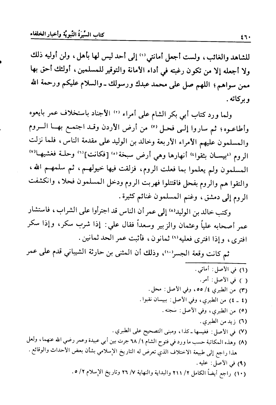 (8) وهذه المكاتبة حسب ما ورد في فتوح الشام 1/ 68 جرت بين أبي عبيدة وعمر رضي الله عنهما، ولعل هذا راجع إلى طبيعة الاختلاف الذي تعرض له التاريخ الإسلامي بشأن بعض الأحداث والوقائع.