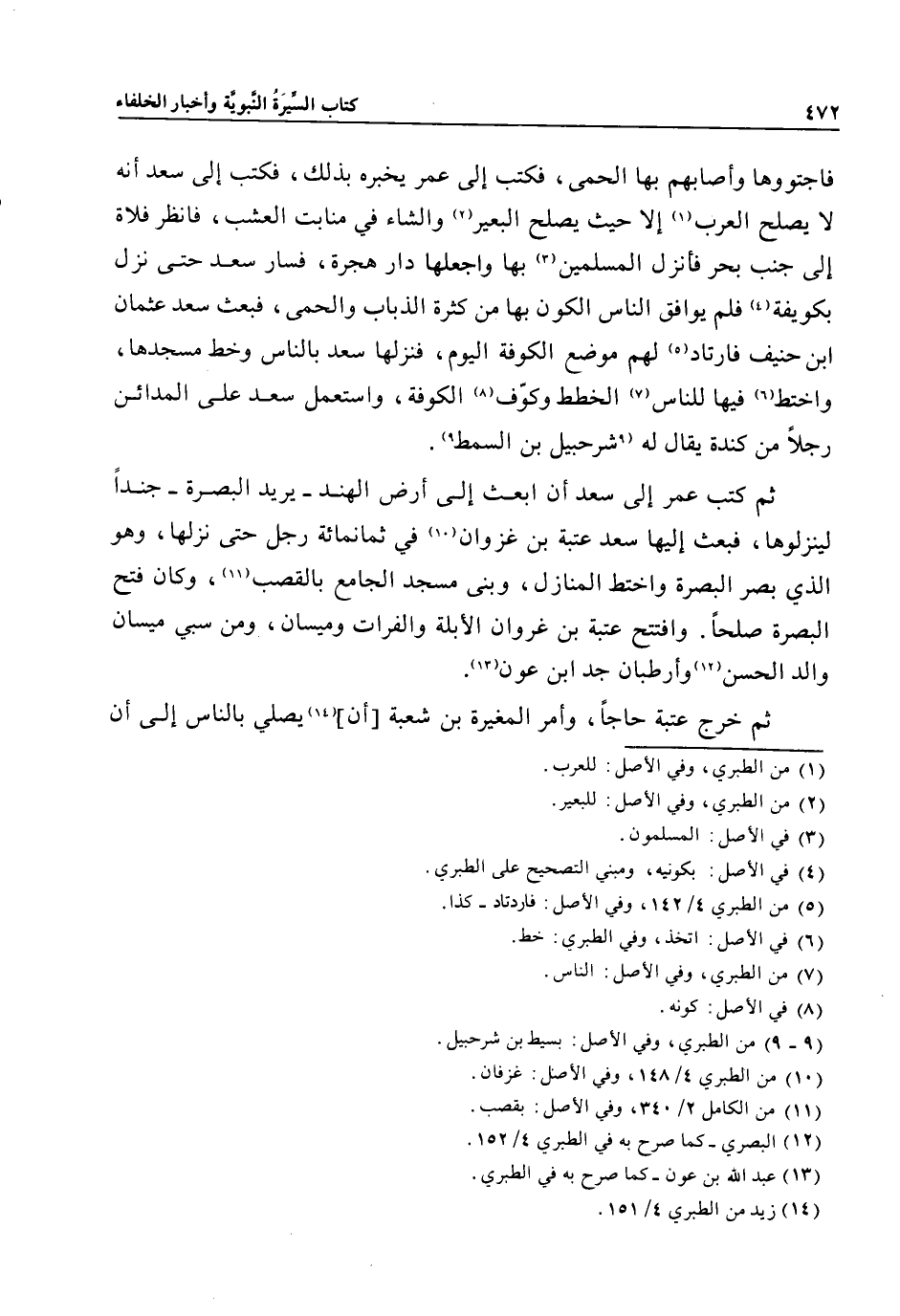 ثم كتب عمر إلى سعد أن ابعث إلى أرض الهند- يريد البصرة- جندا لينزلوها، فبعث إليها سعد عتبة بن غزوان «10» في ثمانمائة رجل حتى نزلها، وهو الذي بصر البصرة واختط المنازل، وبنى مسجد الجامع بالقصب «11» ، وكان فتح البصرة صلحا. وافتتح عتبة بن غروان الأبلة والفرات وميسان، ومن سبي ميسان والد الحسن «12» وأرطبان جد ابن عون «13» .