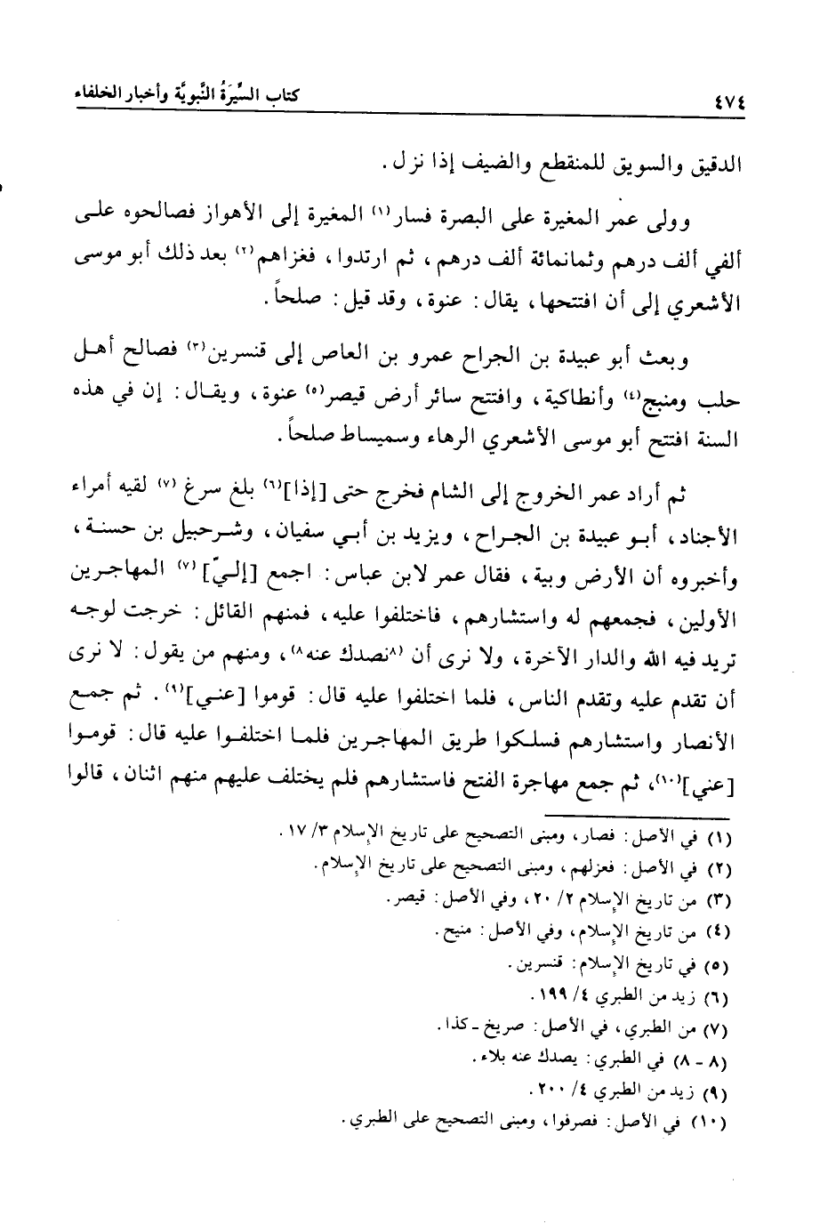 ثم أراد عمر الخروج إلى الشام فخرج حتى [إذا] «6» بلغ سرغ «7» لقيه أمراء الأجناد، أبو عبيدة بن الجراح، ويزيد بن أبي سفيان، وشرحبيل بن حسنة، وأخبروه أن الأرض وبية، فقال عمر لابن عباس: اجمع [إليّ] «7» المهاجرين الأولين، فجمعهم له واستشارهم، فاختلفوا عليه، فمنهم القائل: خرجت لوجه تريد فيه الله والدار الآخرة، ولا نرى أن «8» نصدك عنه «8» ، ومنهم من يقول: لا نرى أن تقدم عليه وتقدم الناس، فلما اختلفوا عليه قال: قوموا [عني] «9» . ثم جمع الأنصار واستشارهم فسلكوا طريق المهاجرين فلما اختلفوا عليه قال: قوموا [عني] 1»