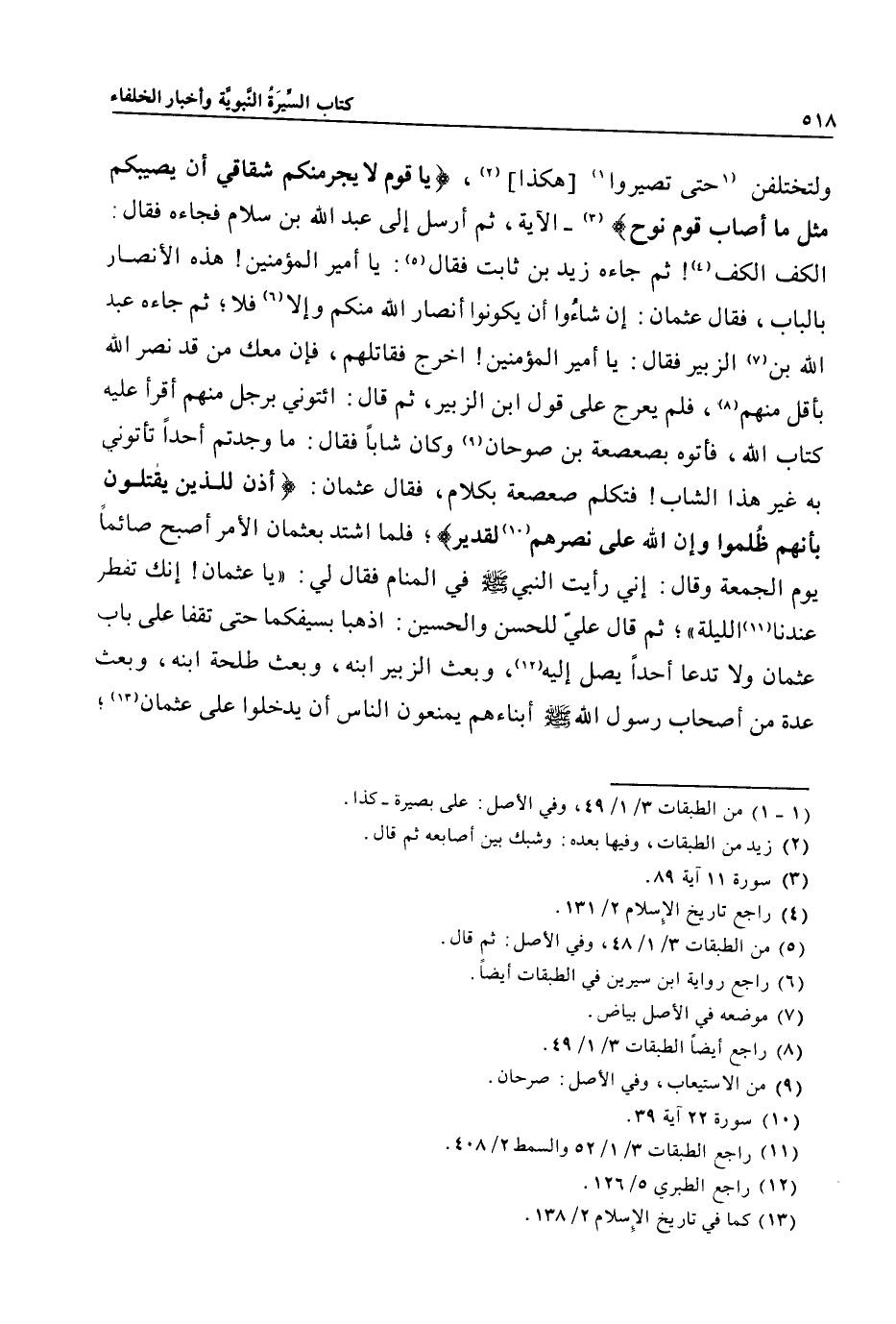 (6) راجع رواية ابن سيرين في الطبقات أيضا.