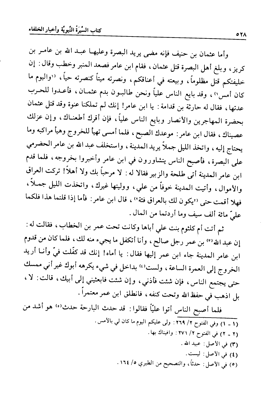 وأما عثمان بن حنيف فإنه مضى يريد البصرة وعليها عبد الله بن عامر بن كريز، وبلغ أهل البصرة قتل عثمان، فقام ابن عامر فصعد المنبر وخطب وقال: إن خليفتكم قتل مظلوما، وبيعته في أعناقكم، ونصرته ميتا كنصرته حيا، «1» واليوم ما كان أمس «1» ، وقد بايع الناس عليا ونحن طالبون بدم عثمان، فأعدوا للحرب عدتها، فقال له حارثة بن قدامة: يا ابن عامر! إنك لم تملكنا عنوة وقد قتل عثمان بحضرة المهاجرين والأنصار وبايع الناس عليا، فإن أقرك أطعناك، وإن عزلك عصيناك، فقال ابن عامر: موعدك الصبح، فلما أمسى تهيأ للخروج وهيأ مراكبه وما يحتاج إليه، واتخذ الليل جملا يريد المدينة، واستخلف عبد الله بن عامر الحضرمي على البصرة، فأصبح الناس يتشاورون في ابن عامر وأخبروا بخروجه، فلما قدم ابن عامر المدينة أتى طلحة والزبير فقالا له: لا مرحبا بك ولا أهلا! تركت العراق والأموال، وأتيت المدينة خوفا من علي، ووليتها غيرك، واتخذت الليل جملا، فهلا أقمت حتى «2» يكون لك بالعراق فئة «2» ، قال ابن عامر: فأما إذا قلتما هذا فلكما عليّ مائة ألف سيف وما أردتما من المال.