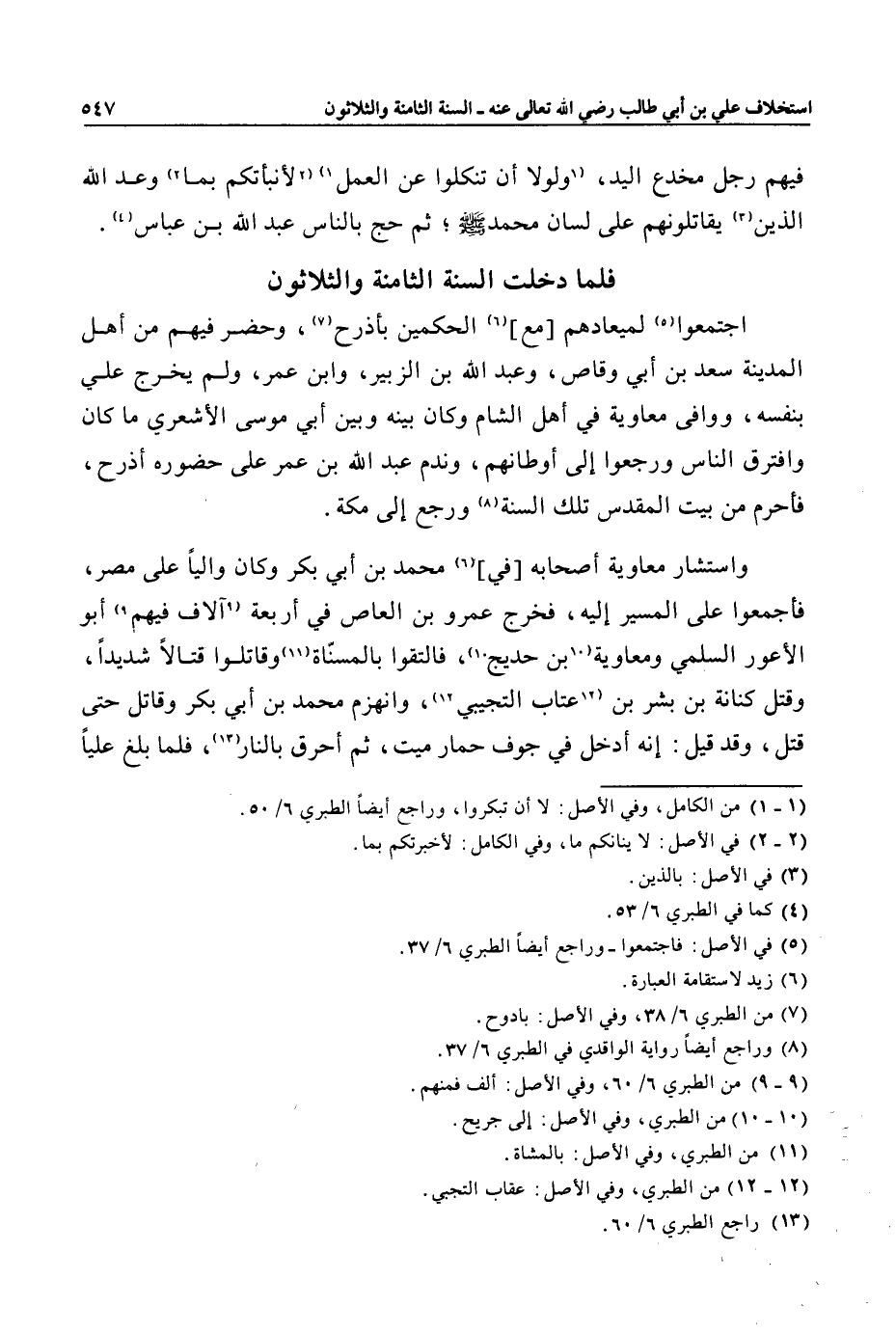 فيهم رجل مخدع اليد، «1» ولولا أن تنكلوا عن العمل «1» «2» لأنبأتكم بما «2» وعد الله الذين «3» يقاتلونهم على لسان محمد صلى الله عليه وسلم؛ ثم حج بالناس عبد الله بن عباس «4» .