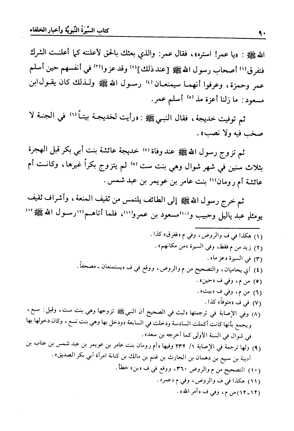 (9) ولها ترجمة في الإصابة 1/ 232 وفيها «أم رومان بنت عامر بن عويمر بن عبد شمس بن عتاب بن أدينة بن سبيع بن دهمان بن الحارث بن غنم بن مالك بن كنانة امرأة أبي بكر الصديق» .