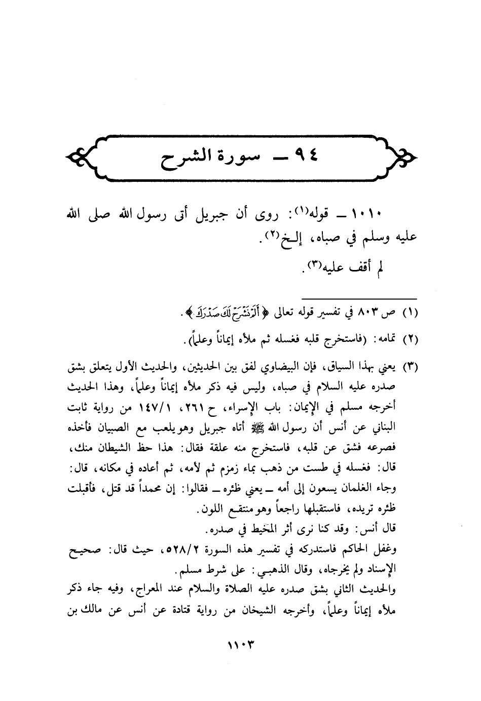 1010 - قَوْله: رَوَى أَن جِبْرِيل أَتَى رَسُول الله صَلَّى اللَّهُ عَلَيْهِ وَسَلَّم َ فِي صباه، إِلَخ.