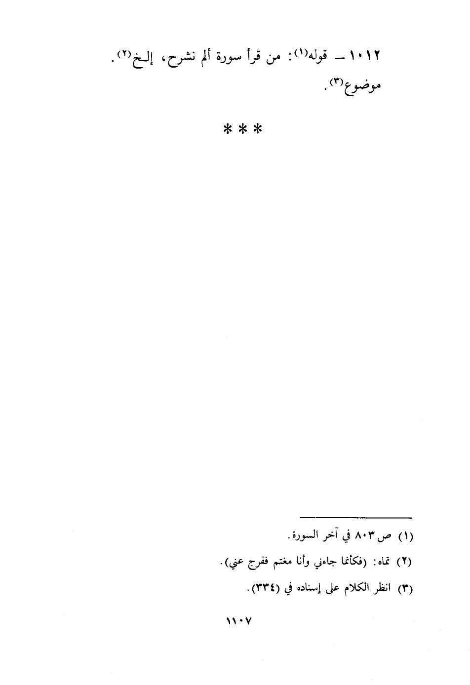 1012 - قَوْله: من قَرَأَ سُورَة ألم نشرح، إِلَخ.