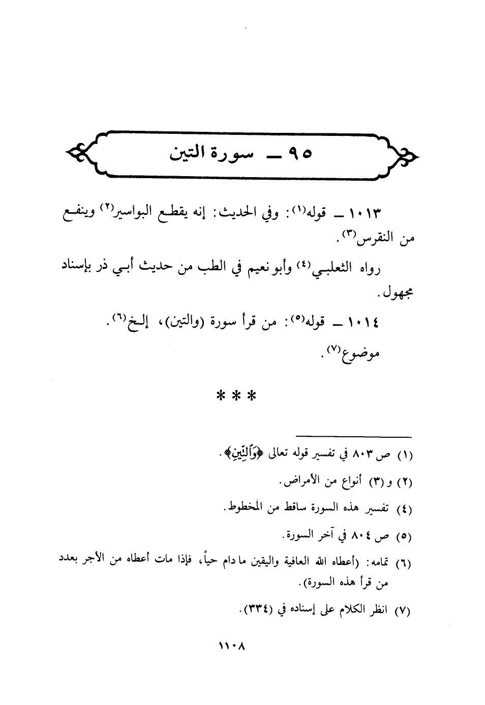 1014 - قَوْله: من قَرَأَ سُورَة (والتين) ،إِلَخ.