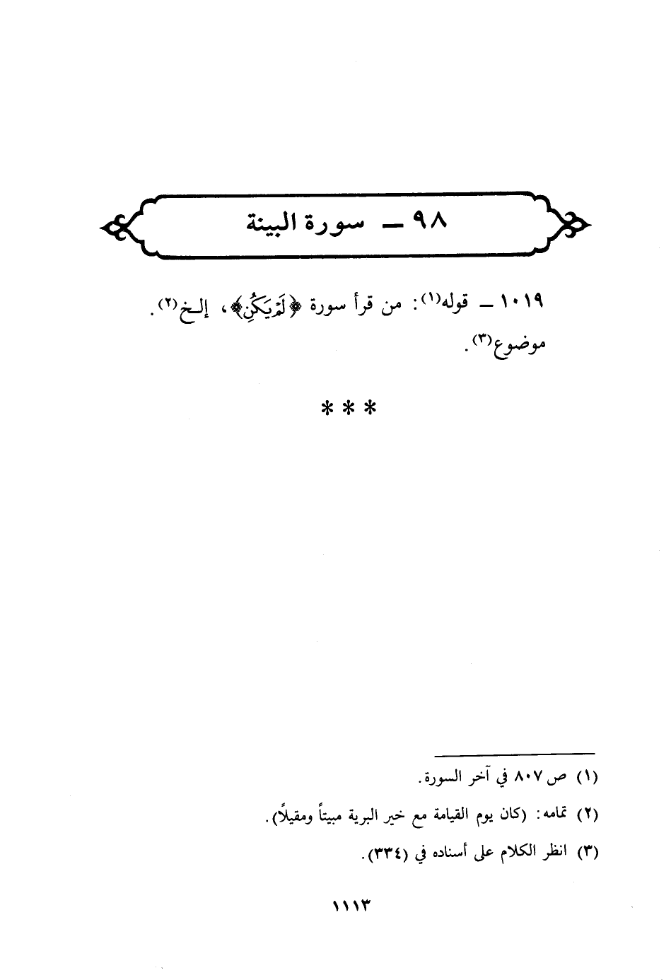 1019 - قَوْله: من قَرَأَ سُورَة (لم يكن) ، إِلَخ.