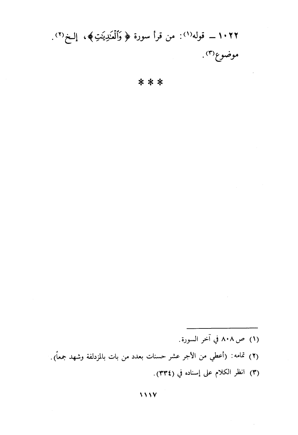 1022 - قَوْله: من قَرَأَ سُورَة (وَالْعَادِيات) ، إِلَخ.