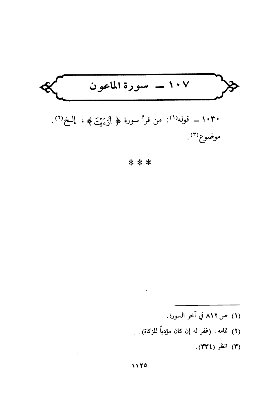 1030 - قَوْله:من قَرَأَ سُورَة (أَرَأَيْت) ، إِلَخ.
