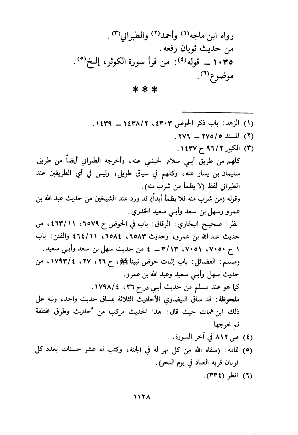 1035 - قَوْله: من قَرَأَ سُورَة الْكَوْثَر، إِلَخ.