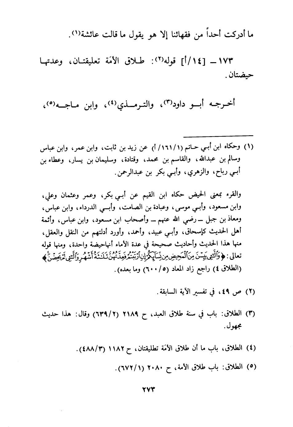 173 -[14/أ] قَوْله: طَلَاق الْأمة تَطْلِيقَتَانِ، وعدتها حيضتان.