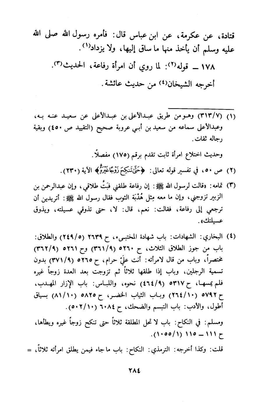 178 - قَوْله: لما رُوِيَ أَن امْرَأَة رِفَاعَة، الحَدِيث.