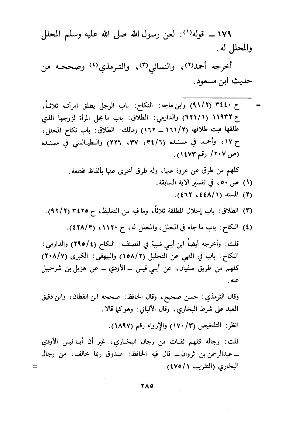 179 - قَوْله: لعن رَسُول الله صَلَّى اللَّهُ عَلَيْهِ وَسَلَّم َ الْمُحَلّل والمحلل لَهُ.