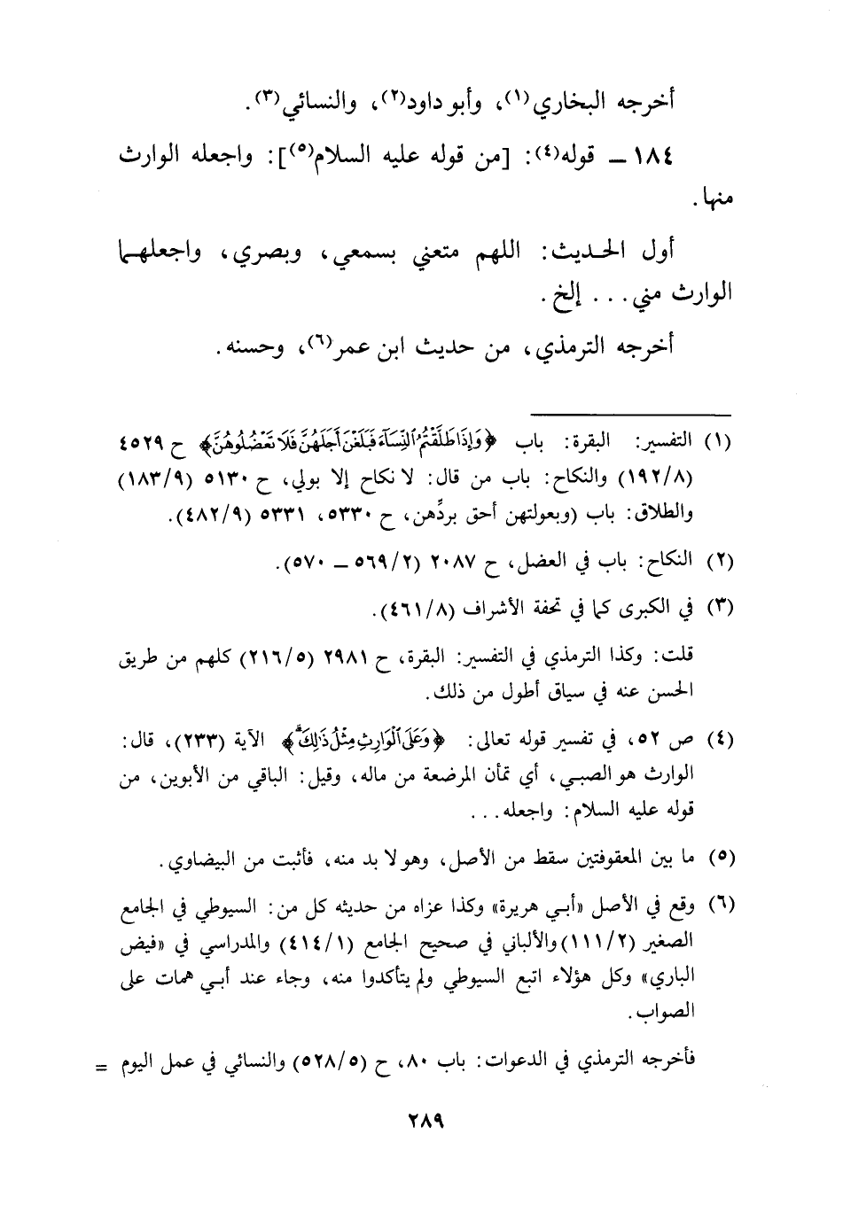 184 - قَوْله: [من قَوْله عَلَيْهِ السَّلَام] : واجعله الْوَارِث مِنْهَا.