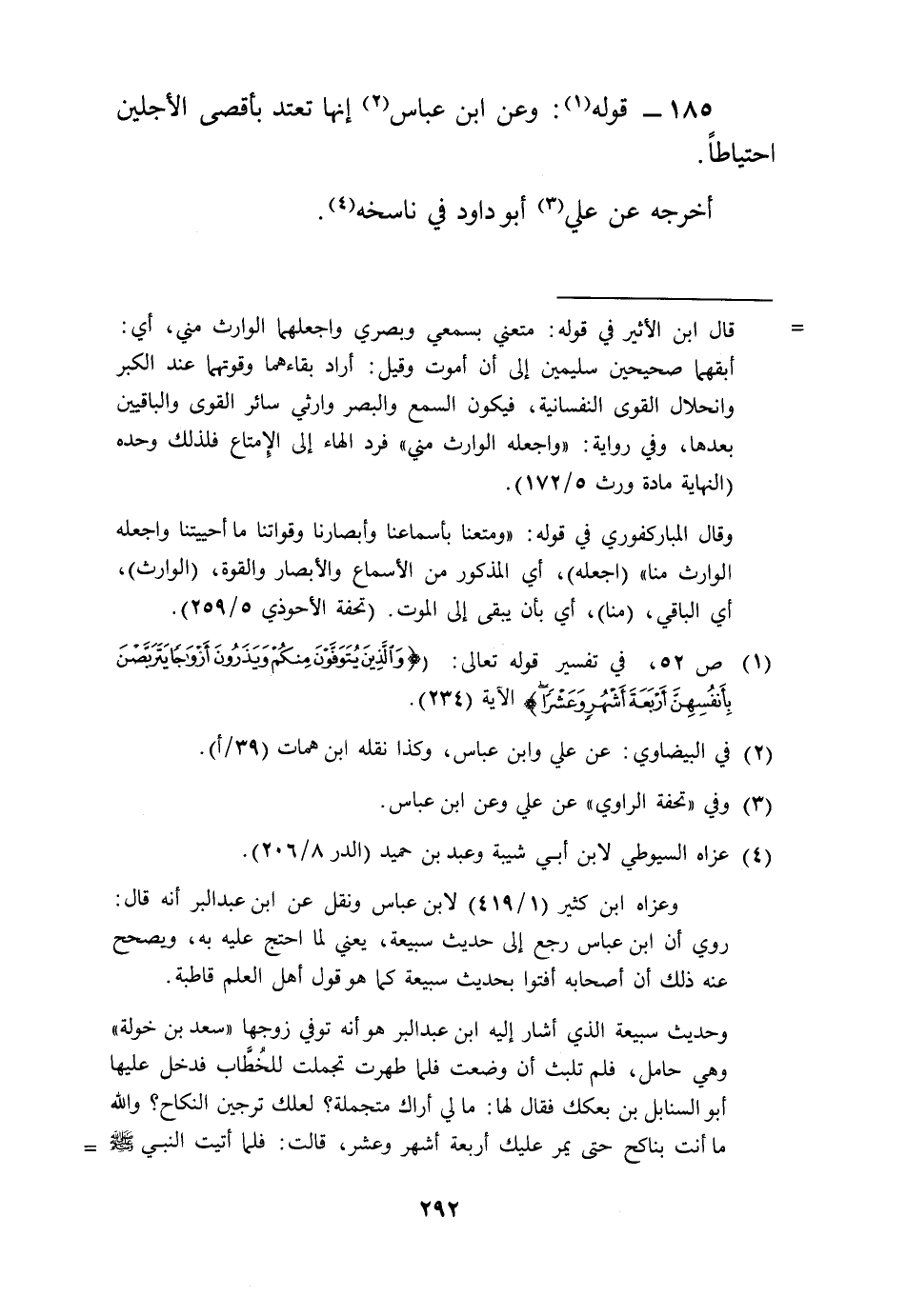 185 - قَوْله: وَعَن ابْن عَبَّاس إِنَّهَا تَعْتَد بأقصى الْأَجَليْنِ احْتِيَاطًا.