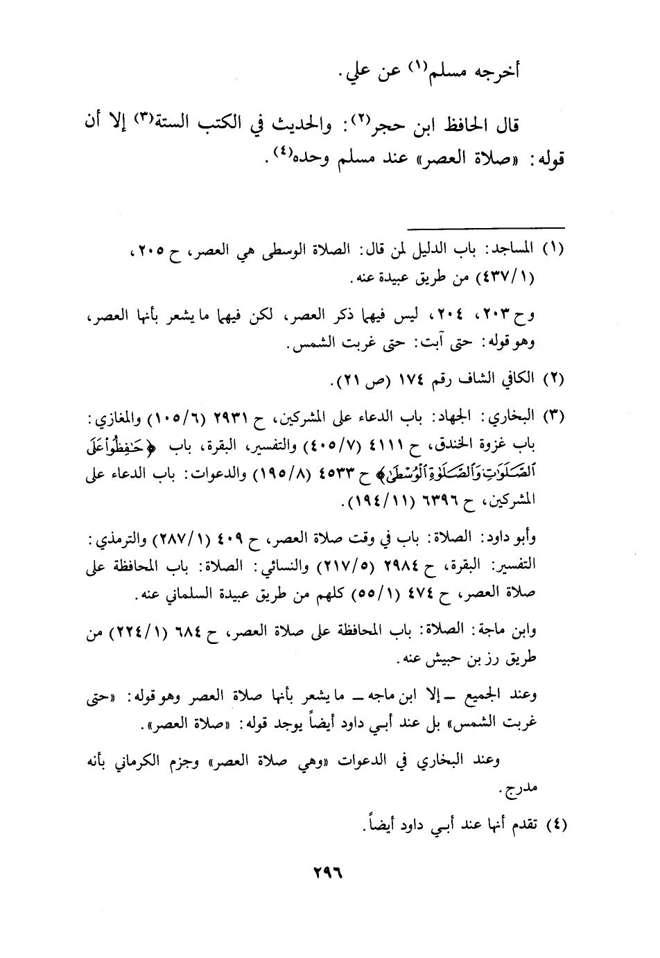 قَالَ الْحَافِظ ابْن حجر: والْحَدِيث فِي الْكتب السِّتَّة إِلَّا أَن قَوْله: «صَلَاة الْعَصْر» عِنْد مُسلم وَحده.