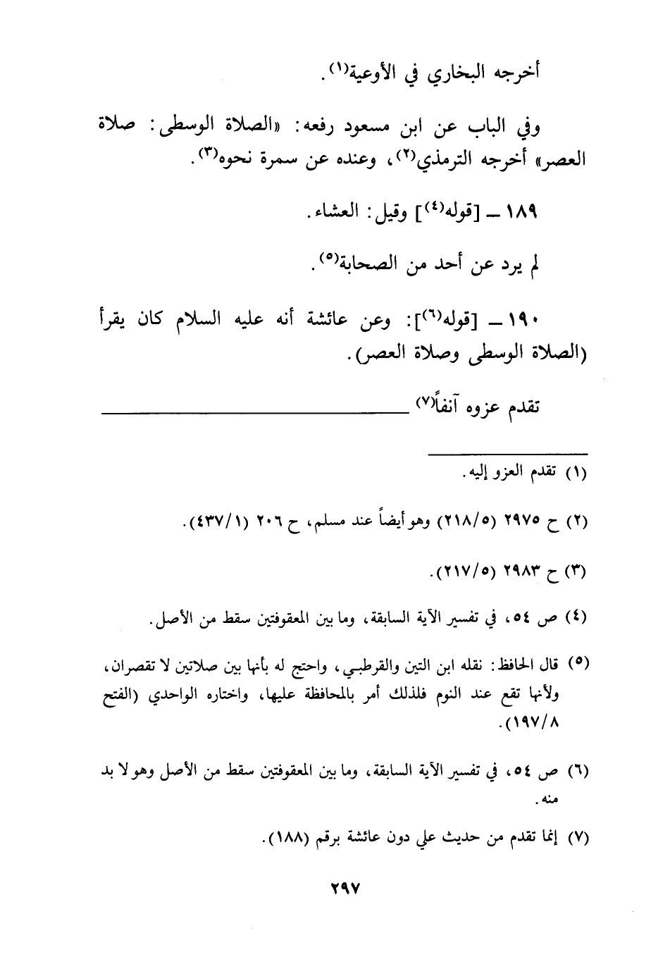 190 -[قَوْله] : وَعَن عَائِشَة أَنه عَلَيْهِ السَّلَام كَانَ يقْرَأ (الصَّلَاة الْوُسْطَى وَصَلَاة الْعَصْر) .