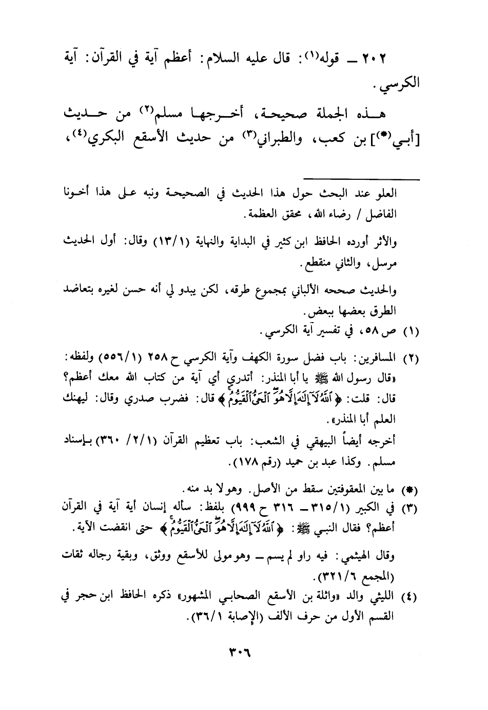 202 - قَوْله: قَالَ عَلَيْهِ السَّلَام: أعظم آيَة فِي الْقُرْآن: آيَة الْكُرْسِيّ.
