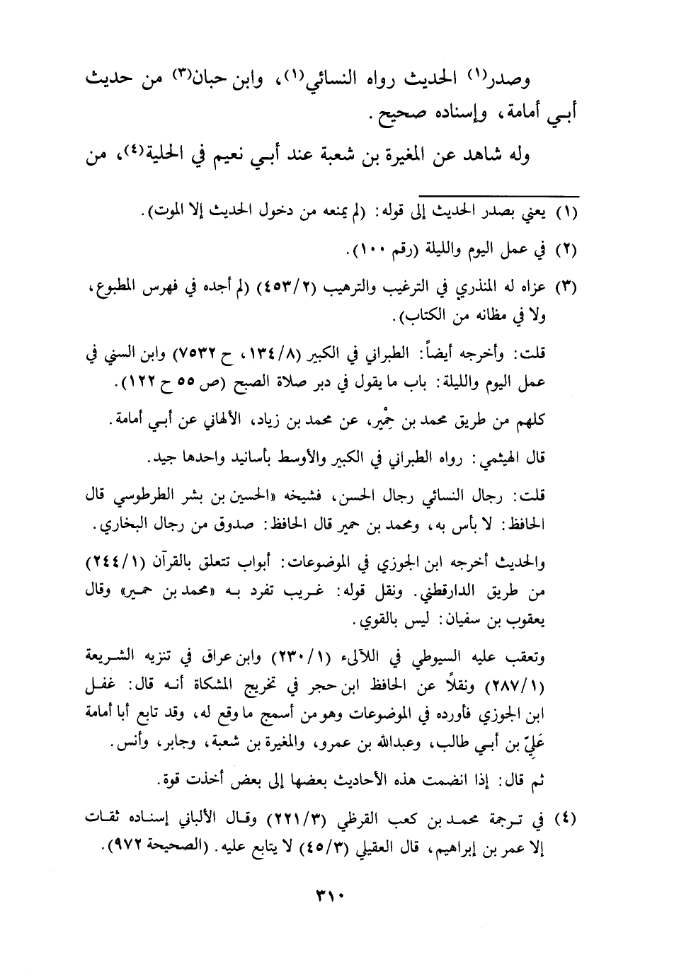 وَصدر الحَدِيث رَوَاهُ النَّسَائِيّ، وَابْن حبَان من حَدِيث أبي أُمَامَة، وَإِسْنَاده صَحِيح.