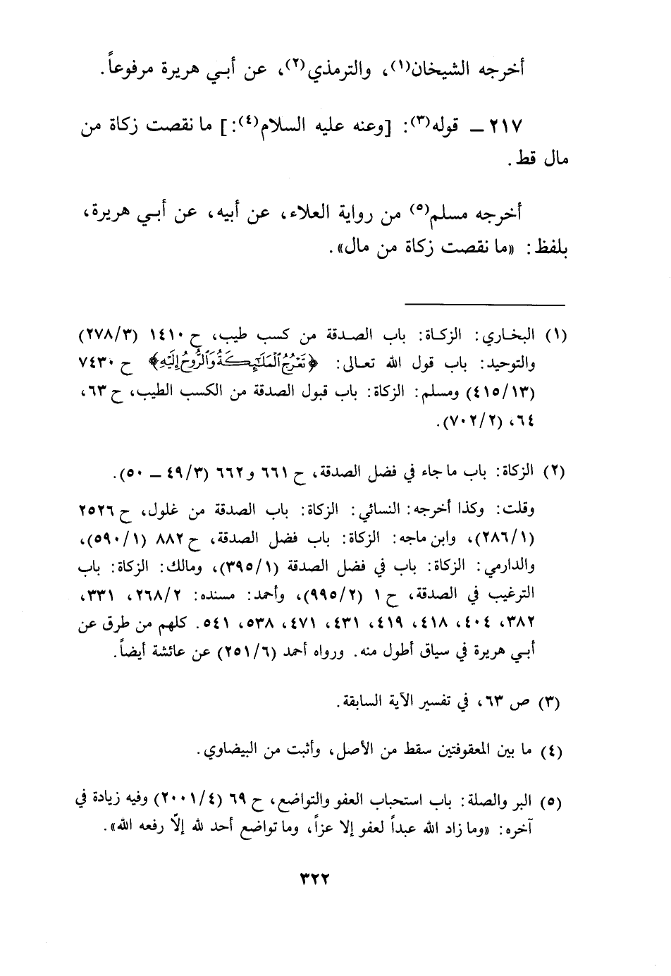 217 - قَوْله: [وَعنهُ عَلَيْهِ السَّلَام:] مَا نقصت زَكَاة من مَال قطّ.