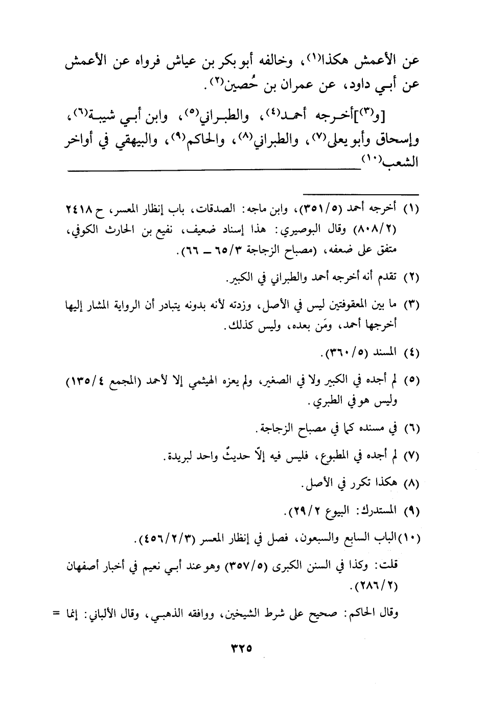 [و] أخرجه أَحْمد، وَالطَّبَرَانِيّ، وَابْن أبي شيبَة، وَإِسْحَاق وَأَبُو يعْلى، وَالطَّبَرَانِيّ، وَالْحَاكِم، وَالْبَيْهَقِيّ فِي أَوَاخِر الشّعب ـــــــــــــــــــ
