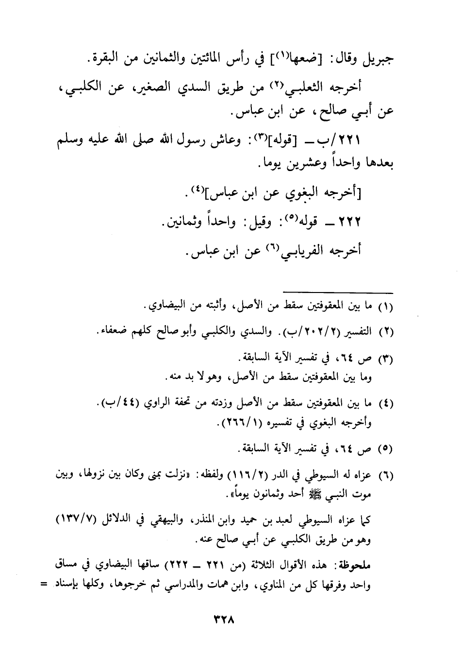 221/ - ب ـ[قَوْله] : وعاش رَسُول الله صَلَّى اللَّهُ عَلَيْهِ وَسَلَّم َ بعْدهَا وَاحِدًا وَعشْرين يَوْمًا.
