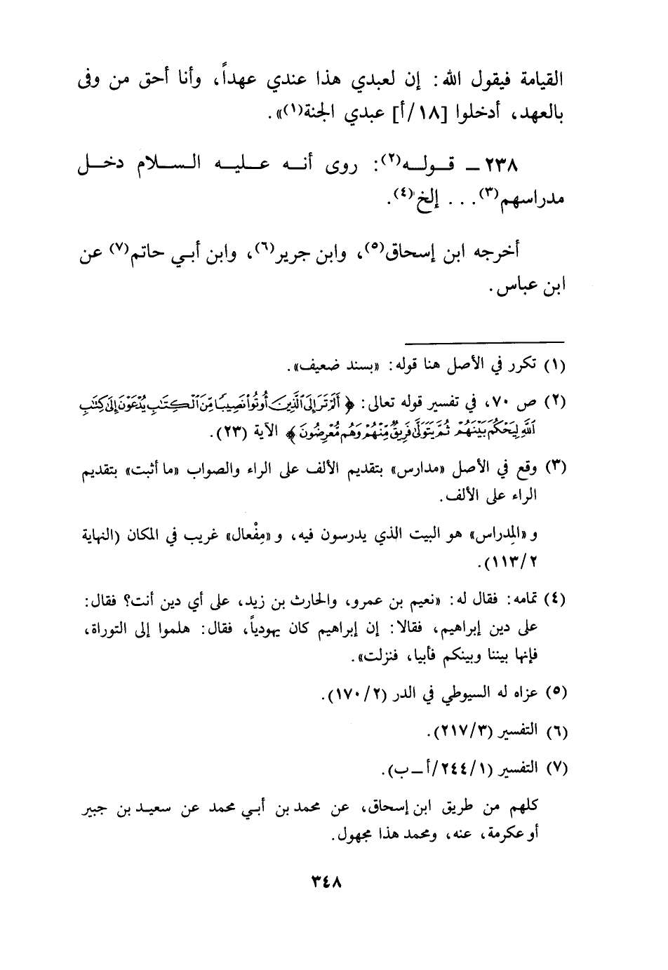 238 - قَوْله: رَوَى أَنه عَلَيْهِ السَّلَام دخل مدارسهم ... إِلَخ.