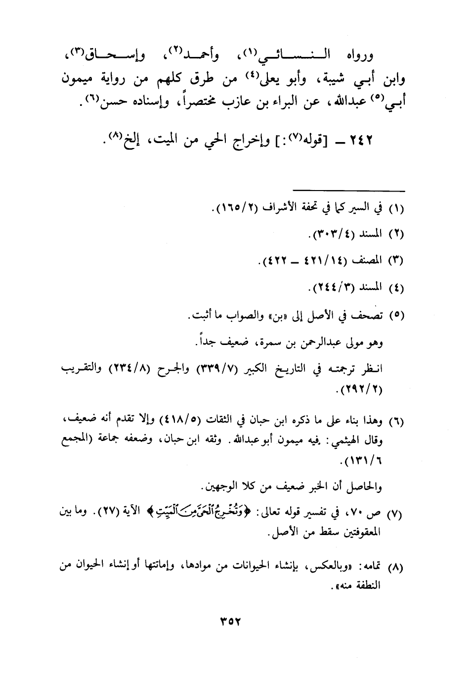 242 -[قَوْله:] وَإِخْرَاج الْحَيّ من الْمَيِّت، إِلَخ.