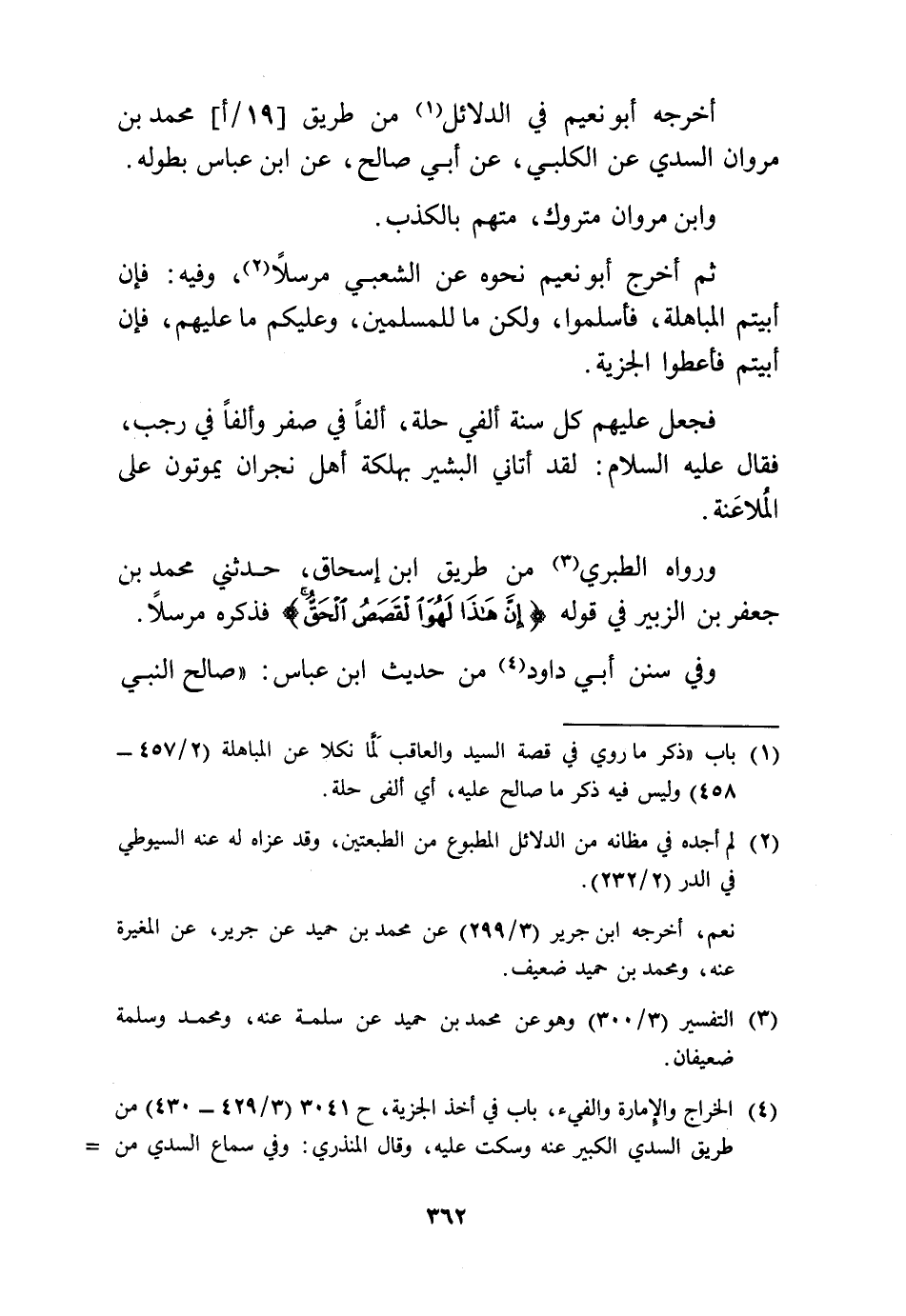 ثمَّ أخرج أَبُو نعيم نَحوه عَن الشّعبِيّ مُرْسلا، وَفِيه: فَإِن أَبَيْتُم المباهلة، فأسلموا، وَلَكِن مَا للْمُسلمين، وَعَلَيْكُم مَا عَلَيْهِم، فَإِن أَبَيْتُم فأعطوا الْجِزْيَة.
