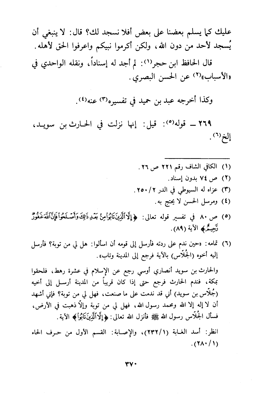 269 - قَوْله: قيل: إِنَّهَا نزلت فِي الْحَارِث بن سُوَيْد، إِلَخ.