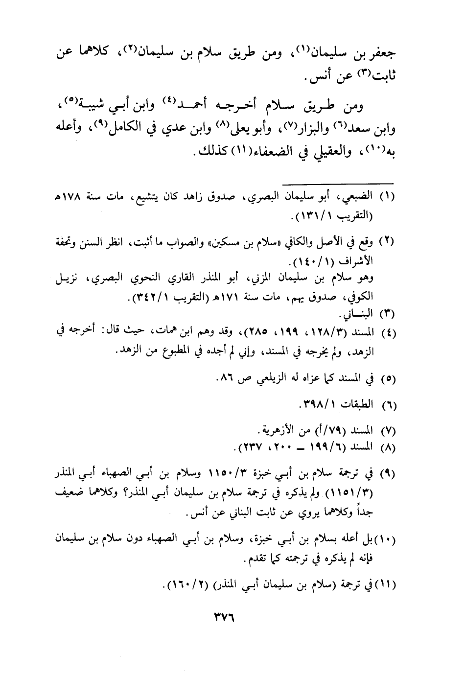 جَعْفَر بن سُلَيْمَان، وَمن طَرِيق سَلام بن سُلَيْمَان، كِلَاهُمَا عَن ثَابت عَن أنس.