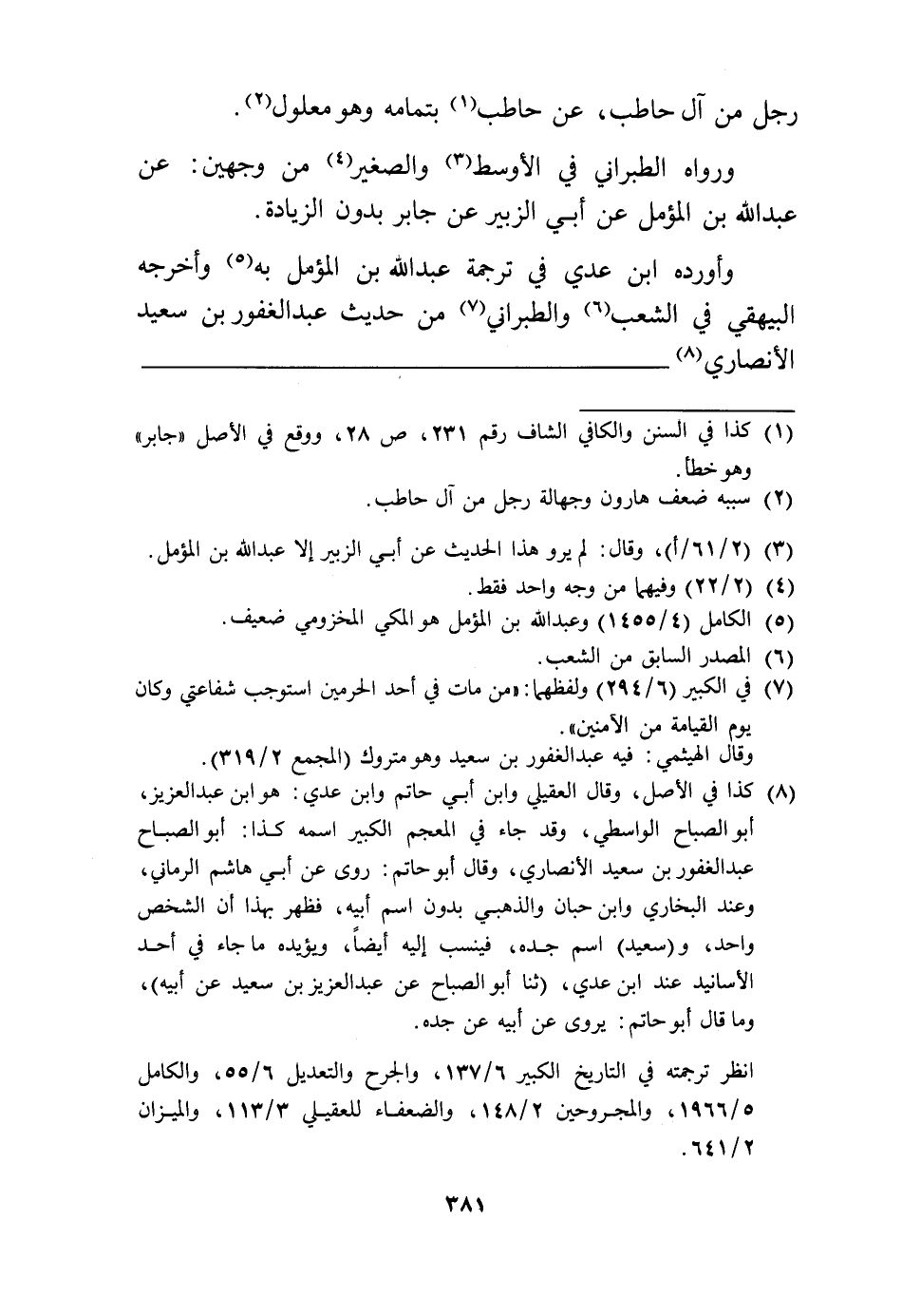 رجل من آل حَاطِب، عَن حَاطِب بِتَمَامِهِ وَهُوَ مَعْلُول.