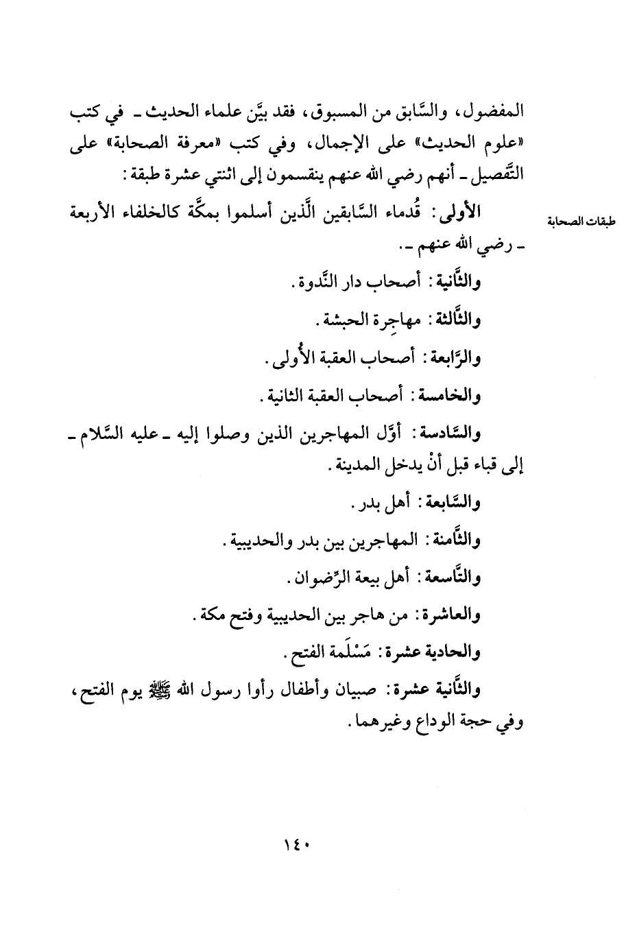 المفضول, والسّابق من المسبوق, فقد بيّن علماء الحديث -في كتب ((علوم الحديث)) على الإجمال, وفي كتب ((معرفة الصّحابة)) على التّفصيل- أنهم رضي الله عنهم ينقسمون إلى اثنتي عشرة طبقة: