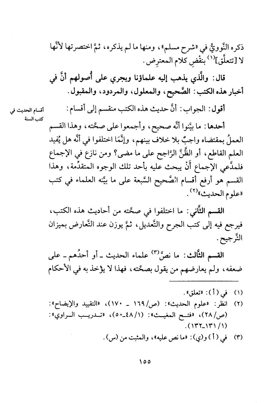 قال: والذي يذهب إليه علماؤنا ويجري على أصولهم أنّ في أخبار هذه الكتب: الصّحيح, والمعلول, والمردود, والمقبول.