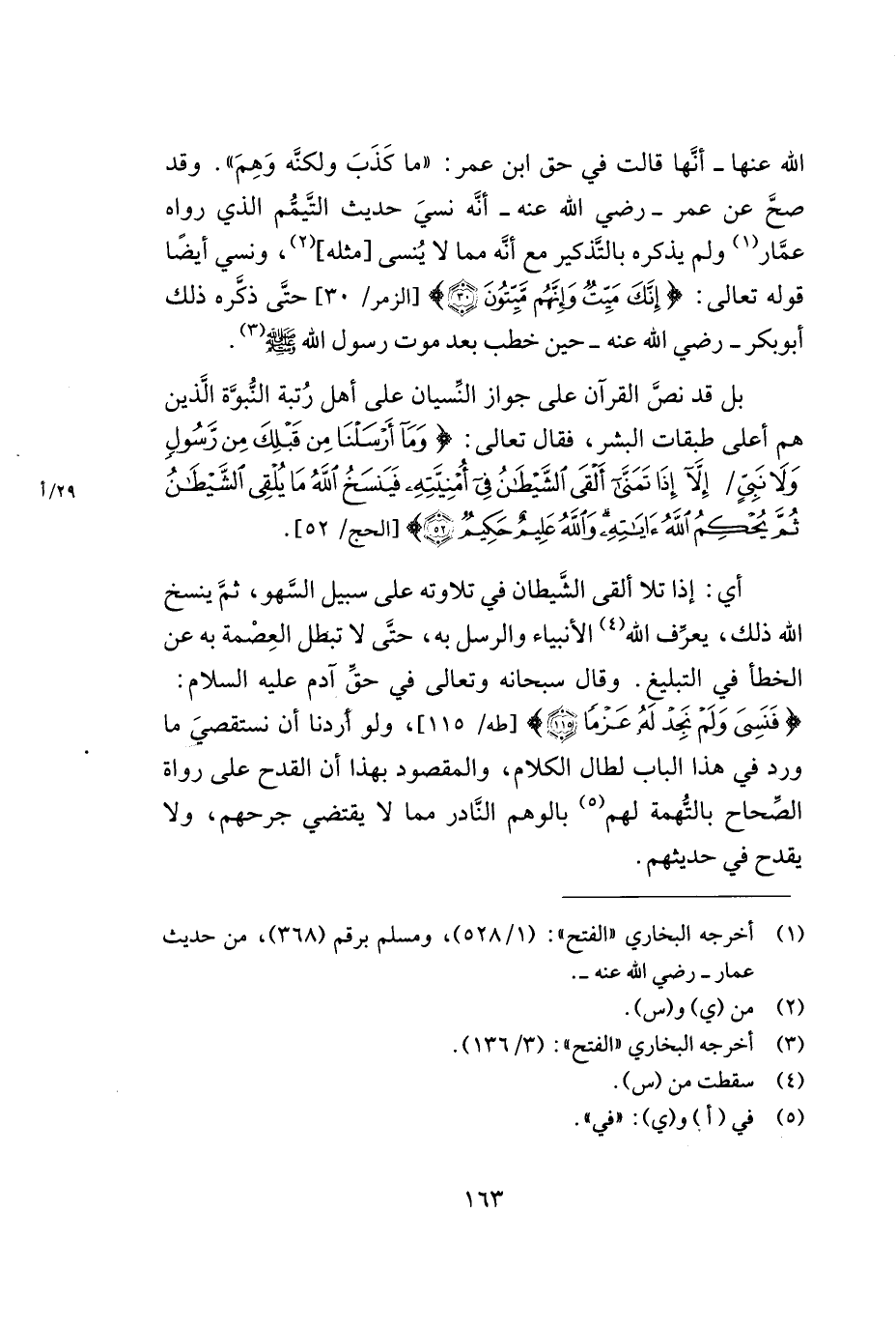بل نصّ القرآن على جواز النّسيان على أهل رتبة النّبوّة الذين هم أعلى طبقات البشر, فقال تعالى: {وَمَا أَرسَلنَا مِنْ قَبلِكَ مِنْ رَسُولٍ وَلاَ نَبِيِّ/ إِلاَّ إِذَا تَمَنَّى أَلقَى الشَّيطَانُ فِي أُمْنِيَّتِهِ فَيَنْسَخُ اللهُ مَا يُلقِي الشَّيطَانُ ثُمَّ يُحْكِمُ اللهُ آيَاتِهِ وَاللهُ عَلِيمٌ حَكِيمٌ} [الحج:52].