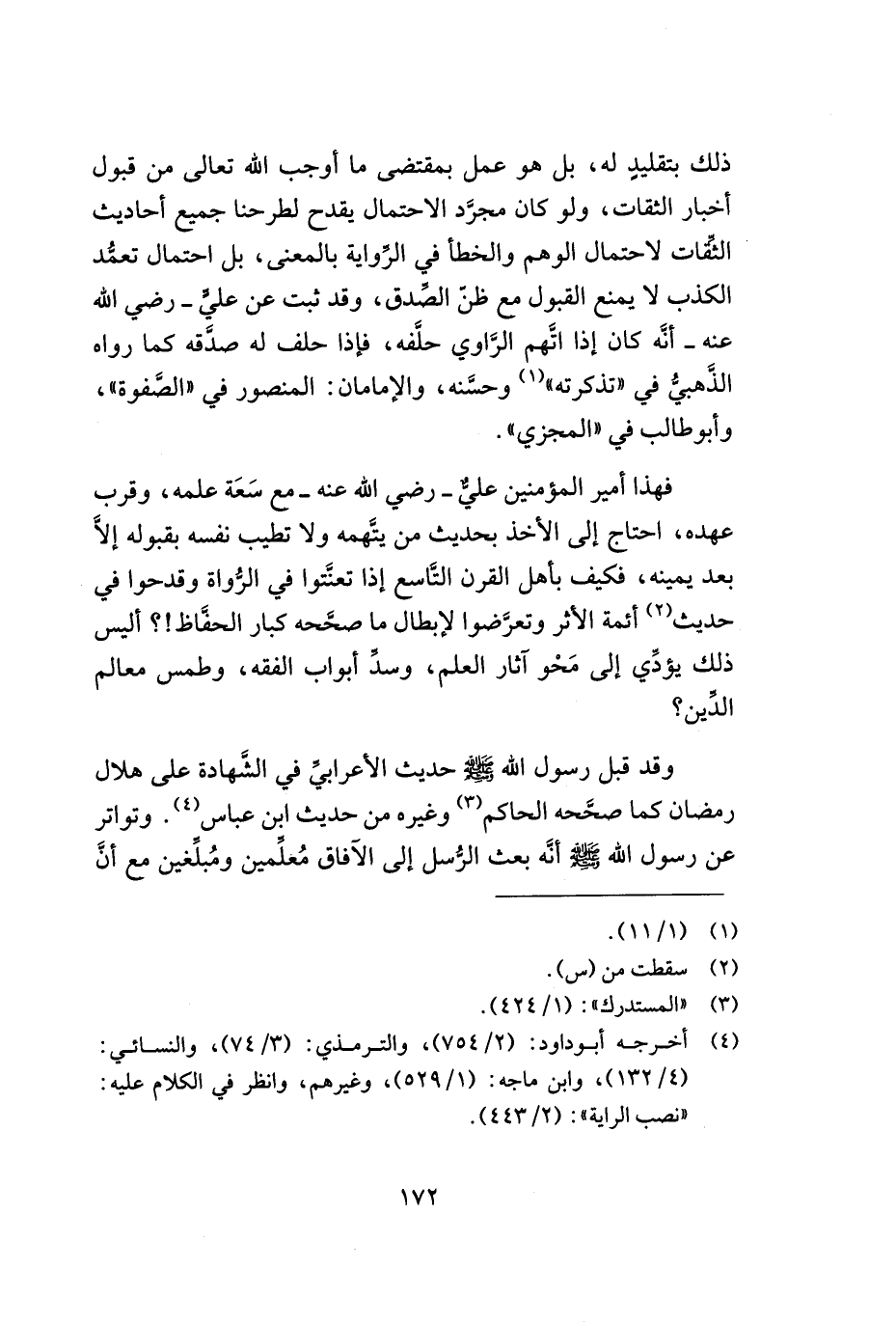 فهذا أمير المؤمنين عليّ - رضي الله عنه - مع سعة علمه, وقرب عهده, احتاج إلى الأخذ بحديث من يتّهمه ولا تطيب نفسه بقبوله إلا بعد يمينه, فكيف بأهل القرن التّاسع إذا تعنّتوا في الرّواة وقدحوا في حديث (¬2) أئمة الأثر وتعرّضوا لإبطال ما صحّحه كبار الحفّاظ؟ أليس ذلك يؤدّي إلى محو آثار العلم, وسدّ أبواب الفقه, وطمس معالم الدّين؟.