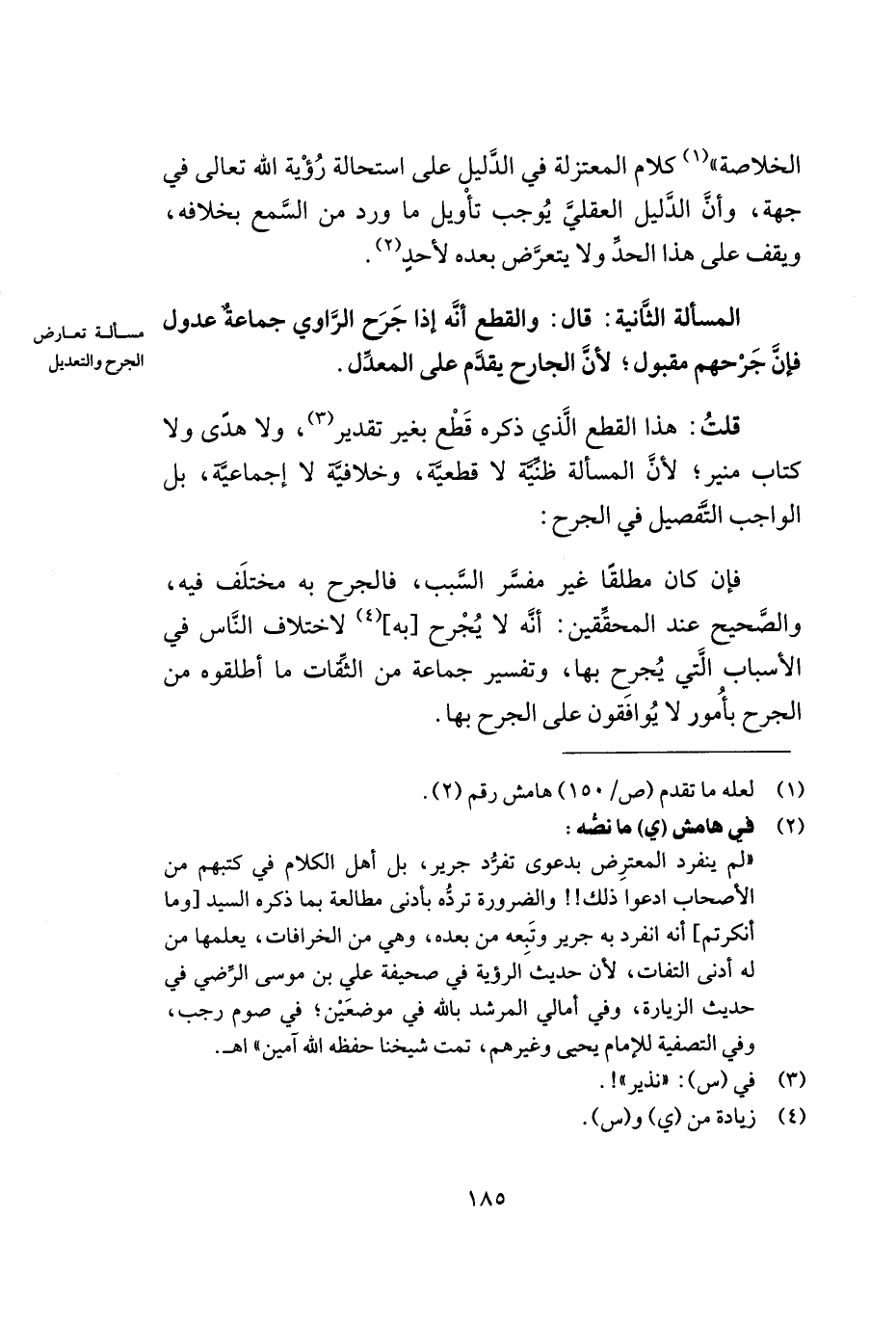 المسألة الثّانية: قال: والقطع أنّه إذا جرح الرّاوي جماعة عدول فإنّ جرحهم مقبول؛ لأنّ الجارح يقدّم على المعدّل.