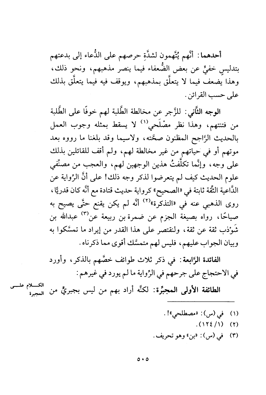 الطّائفة الأولى المجبّرة: لكنّه أراد بهم من ليس بجبريّ من
