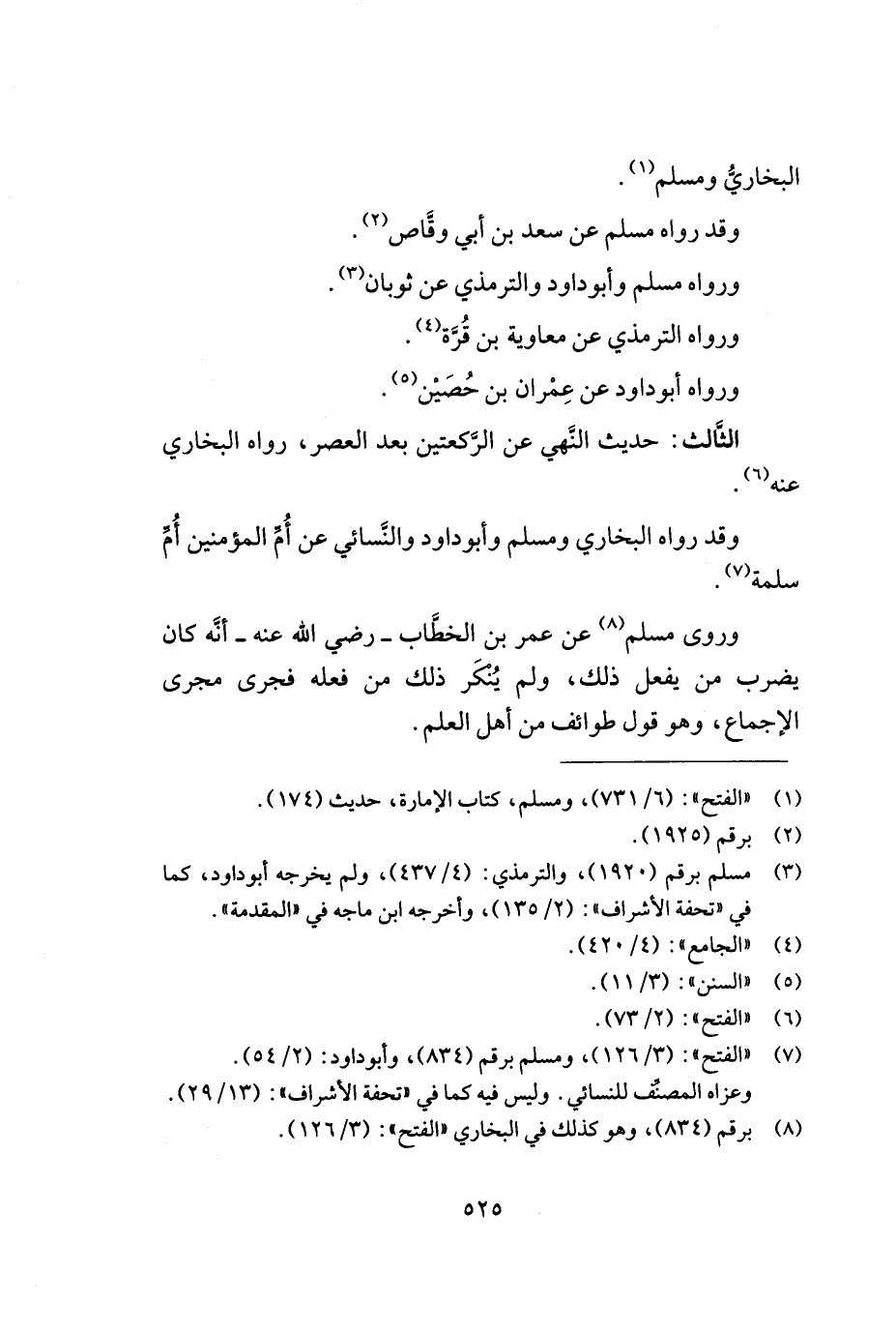 وروى مسلم (¬8) عن عمر بن الخطّاب - رضي الله عنه - أنّه كان يضرب من يفعل ذلك, ولم ينكر ذلك من فعله فجرى مجرى الإجماع, وهو قول طوائف من أهل العلم.